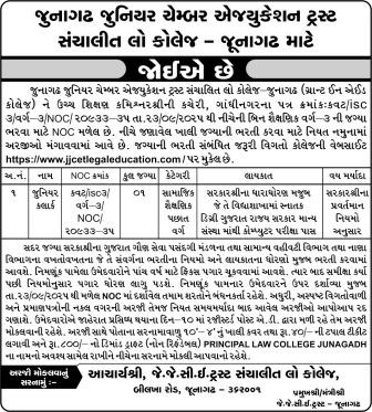 Junanadh Junior Chember Education Trust Sanchalit Law College Was Established In 1969. Law college started functioning, the only law college in those day offering co-education and imparting education opportunities to young generation to the under able guidance and leadership of Ex.M.P Mr.Nanjibhai Vekariya A Precident of the Trust.